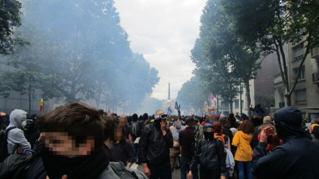 Unions and revolutionary groups called out for a mass street protest on 14. June 2016 in France. Hundreds of thousands participated in the demonstration against new reforms to labor laws, capitalism and state oppression. In addition, many people from all over Europe went to Paris to show solidarity with the movement.