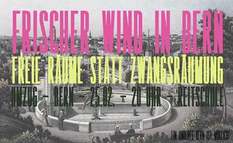 Besammlung vor dem Umzug ist am Samstag 25. Februar 2017 um 20 Uhr auf dem Vorplatz der Reitschule Bern.