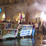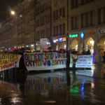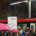 Während der Demo wurden Parolen gerufen, Flyer verteilt und Feuerwerk gezündet. Die Demo wurde mehrmals durch männlich gelesene Menschen angepöbelt und provoziert, liess sich jedoch nicht einschüchtern. Dies unterstreicht auch die Notwendigkeit solcher Demos und die Aktualität der Thematik. Ganz Absurd war, dass die Polizei mehrmals männlich gelesene Menschen, die in der Nähe der Demo standen, weggeschickt hat. Es schien als versuche die Polizei uns zu „beschützen“, wir wollen und brauchen diesen angeblichen „Schutz“ jedoch nicht, erst recht nicht durch die Polizei, die die Gewalt des Staates repräsentiert und ein fester Bestandteil der patriarchalen Herrschaftsverhältnisse ist und gegen die wir uns gemeinsam schützen müssen.