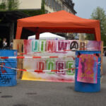 Gestern besetzten wird um 10 Uhr morgens einen Teil der Lorraine. Die Form einer Besetzung wählten wir bewusst, um neue Weg der politischen Praxis in Bern zu testen. Dadurch trugen wir unseren Anteil dazu bei, die bewilligten Aktionen in der Stadt kämpferisch zu erweitern und wir waren an diesem Tag nicht die einzigen, die sich autonom die Strassen nahmen. Im „Jinwar Dorf“ gab es leckeres Essen und Getränke, Infostände, Stellwände, eine Kinderbetreuung, Bastelvorbereitungen für die Demo, viel Raum für Diskussionen, Vorträge über Anarchafeminismus und toxische Männlichkeit, Reden über feministische Bewegungen in Italien und Spanien, sowie diverse Aktionen. Der Name „Jinwar“ ist angelehnt an das „Dorf der freien Frauen*“ in Rojava, wo in den letzten Jahren eine Frauen*revolution durchgesetzt werden konnte.