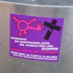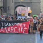 Es wurden fortwährend verschiedene queere Parolen geklebt, sowie mit Plakaten auf die Situation von Aktivist*innen in der Türkei, der in Zürich inhaftierten baskischen Feministin* Nekane und der in Paris inhaftierten Transfrau* Kara Wild aufmerksam gemacht.