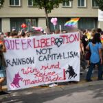 Dies gab uns Anlass dazu, die Pride, die grundsätzlich eine unbedingt nötige und unterstützungswürdige Veranstaltung ist, kritisch zu begleiten. So beteiligten wir uns am Sternmarsch mit Transparenten und Flyern. Zudem störten wir zusammen mit anderen Aktivist*innen die beiden Reden auf dem Bundesplatz.