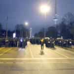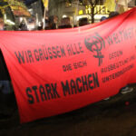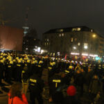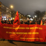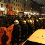Zwischen 4000 bis 5000 Menschen demonstrierten gegen die imperialistische Politik der OSZE-Länder. Schon zu Beginn der Demonstration war die Polizei mit einem deutlich grösseren Aufgebot präsent als zwei Stunden zuvor. Mindestens drei Hundertschaften positionierten sich rund um die Feldstrasse. Als sich die Demonstration in Bewegung setzen wollte, stürmten zeitgleich von allen Seiten vermummte Beweissicherungseinheiten aus Bayern unterstützt von BundespolizistInnen auf die Demonstration zu. Die anwesenden Menschen liessen sich jedoch nicht provozieren und so konnte die Kundgebung dennoch mit Verspätung loslaufen. Zeitweise wurden die Menschen mit je vier Reihen behelmten PolizistInnen begleitet, was eine weitere Machtdemonstration der Staatsgewalt am diesen Tag darstellen sollte. Trotz der massiven Präsenz, lies die Polizei dennoch vieles durchgehen. So war es beispielsweise möglich, dass einige Menschen vermummt mitlaufen konnten. Dies ist bemerkenswert, da in Deutschland ein Verstoss gegen das Vermummungsverbot nicht selten als Grund für das Auflösen von Demonstrationen genutzt wird.