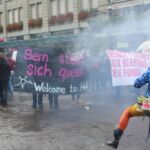 Heute stellten sich mehrere hundert Menschen den Fundis entgegen. Der starke und äusserst laute Protest war weit über den Bundesplatz hinaus hörbar. Mehrere Demozüge formierten sich spontan und liefen immer wieder durch Berns Hauptgassen. So konnte ein breites Publikum auf unsere Inhalte aufmerksam gemacht werden. Zeitgleich waren die christlichen FundamentalistInnen auf dem Bundesplatz eingegittert und wurden in ihren Reden sichtlich gestört. Ein voller Erfolg auf dem wir weiter bauen können, denn die Fundis sitzen auch ohne ein Marsch fürs Läbe mit zahlreichen Organisationen in Bern.