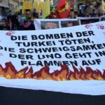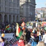 26. Oktober 2019 / Schätzungsweise 5000 Menschen beteiligten sich heute an der bewilligten Solidaritätsdemo in Bern. Das Bündnis richtete verschiedene Forderungen an den Bundesrat. Die letzten Wochen haben gezeigt, dass wir von den weltweiten demokratischen Regierungen nichts erwarten können und sollen. Vielmehr haben die vielen kleinen und mittleren Aktionen, sowie die revolutionären Demonstrationen für Aufmerksamkeit und politischen Druck gesorgt. Während sich nun einige Organisationen rund zwei Wochen nach dem Einmarsch der Türkei wieder zurücklehnen werden, da sie nun ihren „Pflichtbeitrag“ geleistet haben, liegt es an uns tagtäglich weiter zu kämpfen. Hierbei wollen wir auf die Stimmen der kurdischen Bewegung und den Revolutionär*innen in Rojava hören und nicht auf jene Parteien und Organisationen, welche z.T. selber mit dem türksichen Staat kooperieren. Auf zum Weltkobanetag am 2. November! Long Live Rojava!