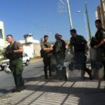 Der Prozessauftakt wurde auf 9.30 Uhr beim Korydallos Gefängnis angesetzt. Schon früh bezogen zahlreiche Riotcops in Vollmontur Stellung und sperrten die zwei einzigen Zugangsstrassen zum Gefängnis ab. Das Ziel der Staatsmacht war es von Anfang an zu verhindern, dass solidarische Menschen in den Gerichtssaal gelangen konnten. So wurde beispielsweise schon vor Prozessbeginn den zahlreichen Sympathisant*innen der Zugang mit der gelogenen Begründung verwehrt, dass der Saal bereits voll sei. Dennoch gelang es Dutzenden im Verlauf der Verhandlung in den Gerichtssaal zu gelangen.
