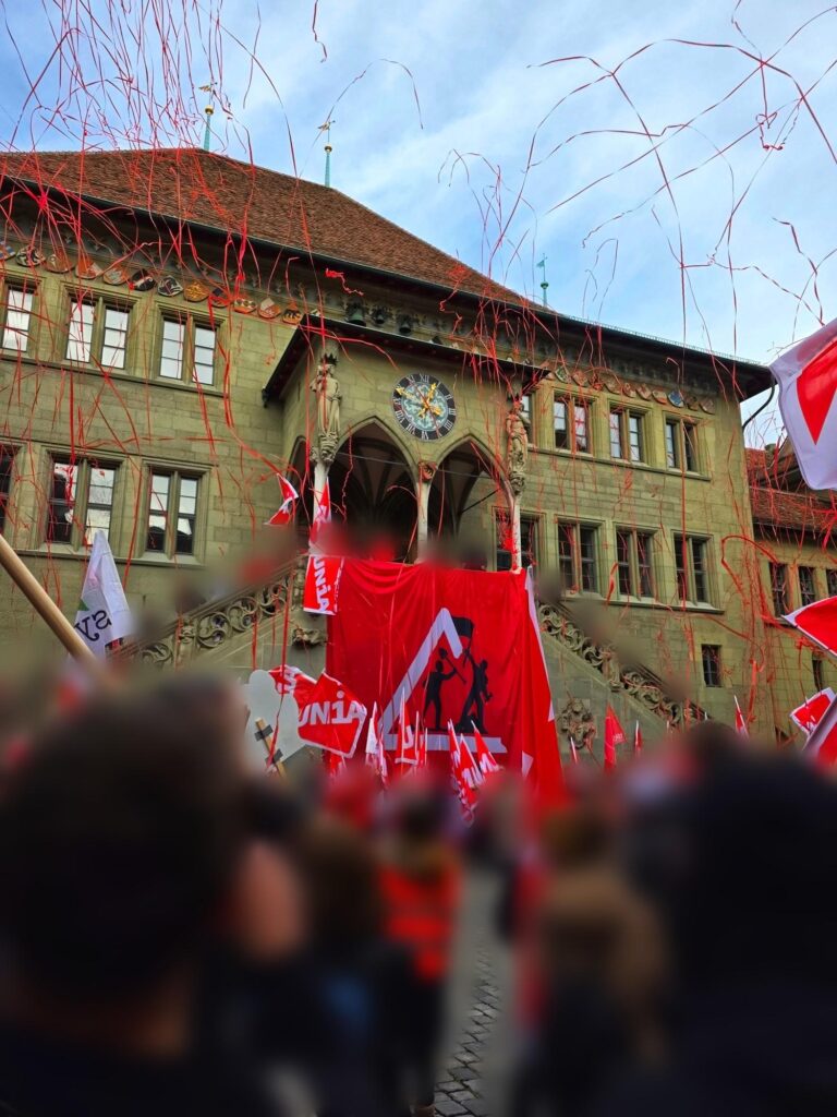 Der eskalierende Verhandlungskampf steht stellvertretend für eine Phase der sozialen, wirtschaftlichen und politischen Transformation von Oben. Gerade jetzt braucht es einen kollektiven Widerstand, sei es in den kommenden Arbeitskämpfen oder gegen die staatliche Repression. So zogen am Mittag rund 1`000 Bauarbeiter*innen und Unterstützer*innen durch die Stadt und machten klar, dass sich die Bauarbeiter*innen und die UNIA nicht einschüchtern lassen.